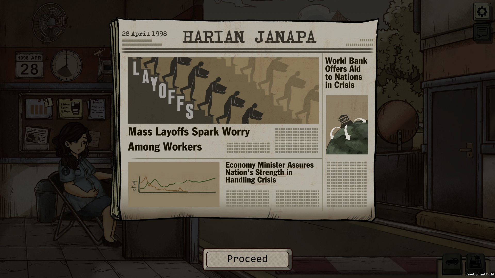 The game places you in the shoes of Dewi, a pregnant toll-booth worker in the fictional Southeast Asian country of Janapa, during a period of escalating civil unrest and economic collapse. The inspiration is drawn from the real-life turmoil of the 1998 Asian financial crisis, especially in Indonesia, yet the developers make clear the story is fictionalised.